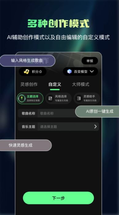 Ai一鍵成曲手機(jī)端使用的音樂創(chuàng)作軟件,這款軟件通過AI技術(shù)快速生成音樂,用戶輸入歌曲名稱、歌詞、音樂風(fēng)格等信息,即可生成完整曲目等,歡迎下載。