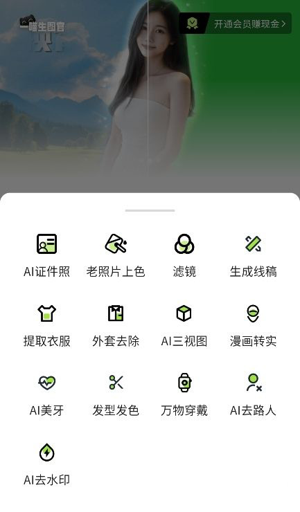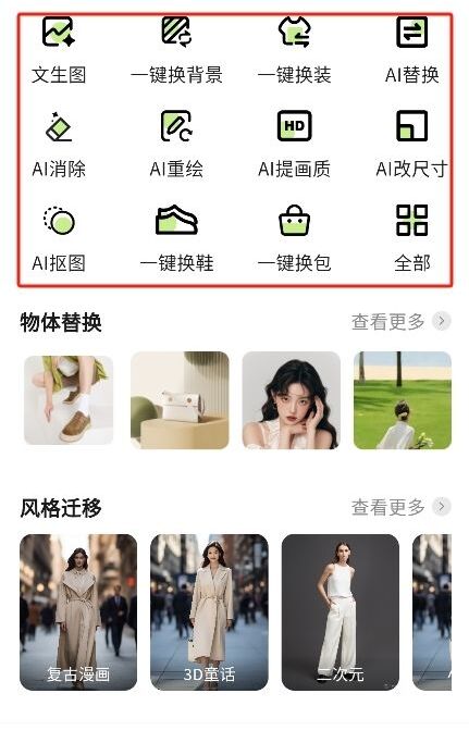 3、提供文生圖、一鍵換背景、一鍵換裝、ai替換、ai消除等等工具合集