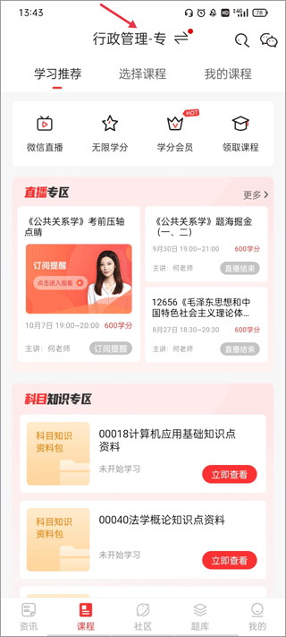 1、你可以在【我的】中的學(xué)習(xí)中心,查看自己的學(xué)分,這些學(xué)分能夠兌換相應(yīng)的課程和考試資料。