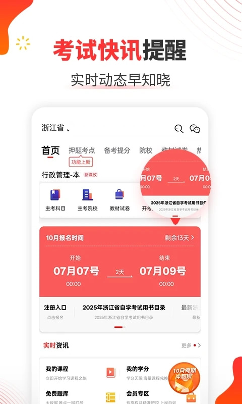 自考伴題庫(kù)考試快訊,報(bào)名、準(zhǔn)考證打印、考試、查分、領(lǐng)證等重要信息,一個(gè)也不錯(cuò)過(guò)!