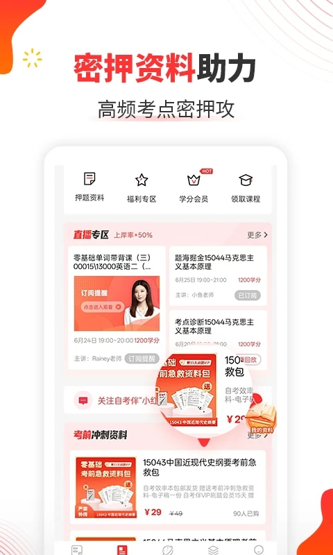 “免費(fèi)直播課”由自考伴題庫(kù)大神講師在線直播,完虐“昂貴、低質(zhì)”的傳統(tǒng)線下機(jī)構(gòu)和欺詐性培訓(xùn)班 。